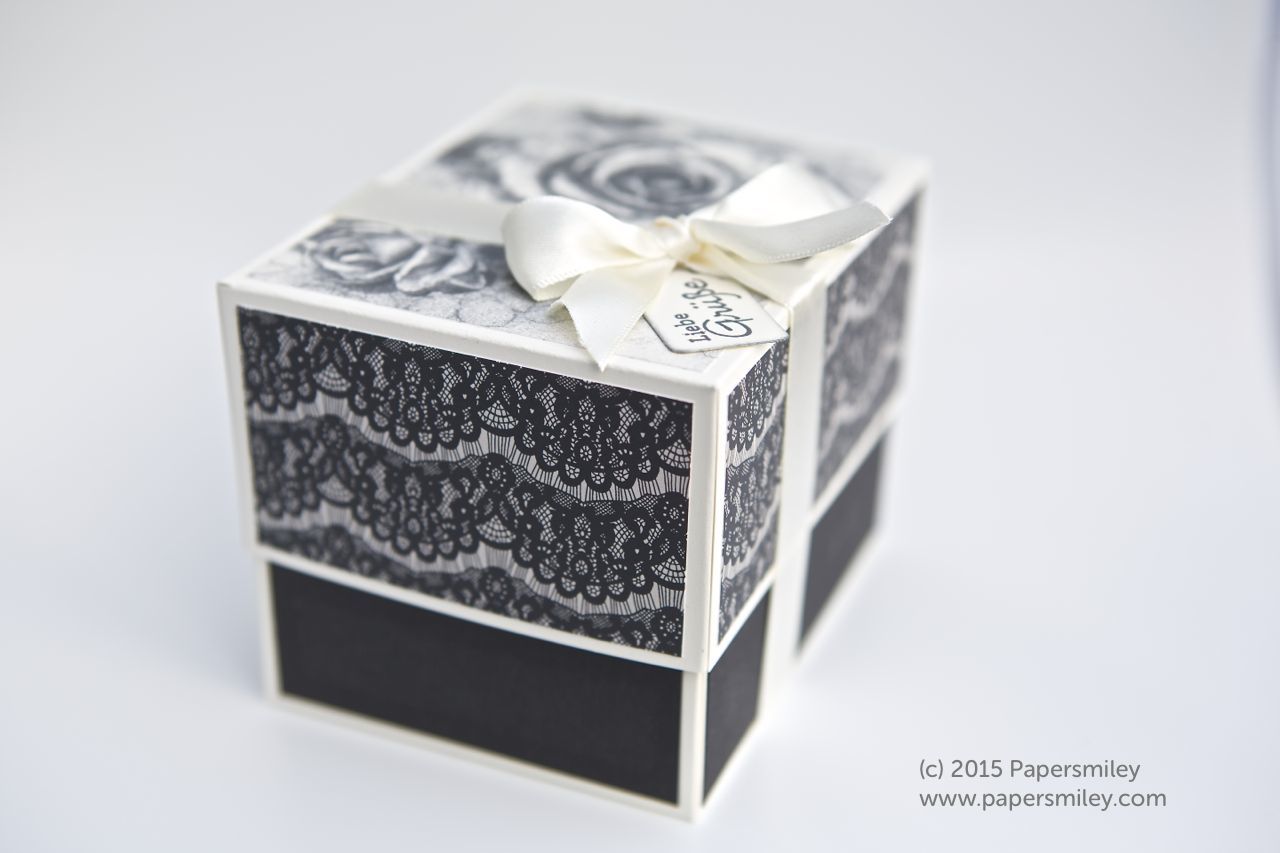 Die Basis der Box ist Vanille. Die Basis-Box ist mit einfarbigem schwarzem Cardstock verkleidet.