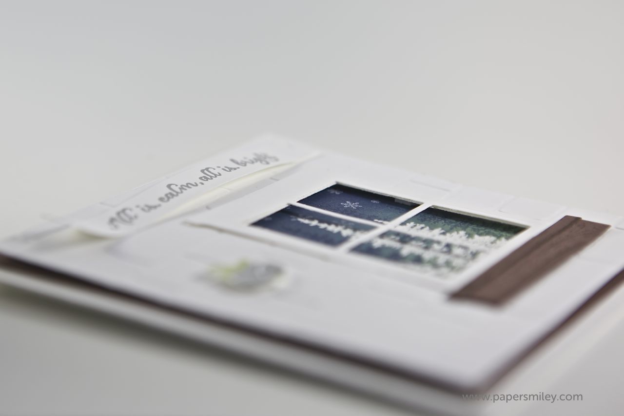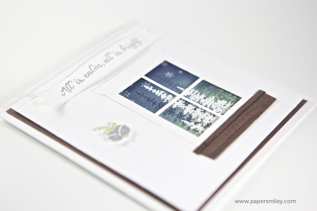 Es hat mich sehr gefreut, dass Stampin‘ Up dieses Jahr ein Fenster ins Programm aufgenommen hat. Damit lassen sich wirklich schöne Szenen gestalten. Der erste Versuch musste natürlich eine Weihnachtskarte sein 😉