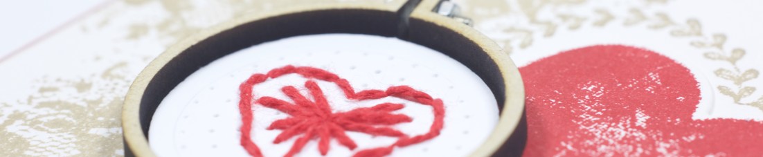 Daher habe ich in meinem Bestand gesucht und alte Prickel-Schablonen gefunden. Davon habe ich eine verwendet, um ein Stück weissen Cardstock ein bisschen zu löchern. Und dann habe ich ein kleines Herz eingestickt. 🙂