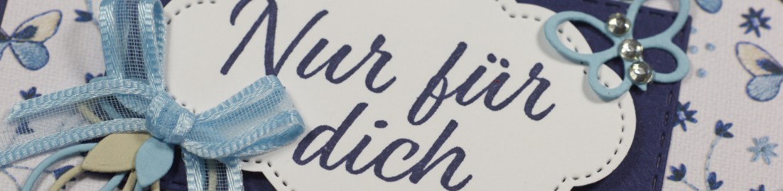 Die blauen Karten sind eher einfach gehalten, mit verschiedenen Sprüchen, Bändern und Deko, sowie dem Designerpapier Aus dem Nähkästchen.