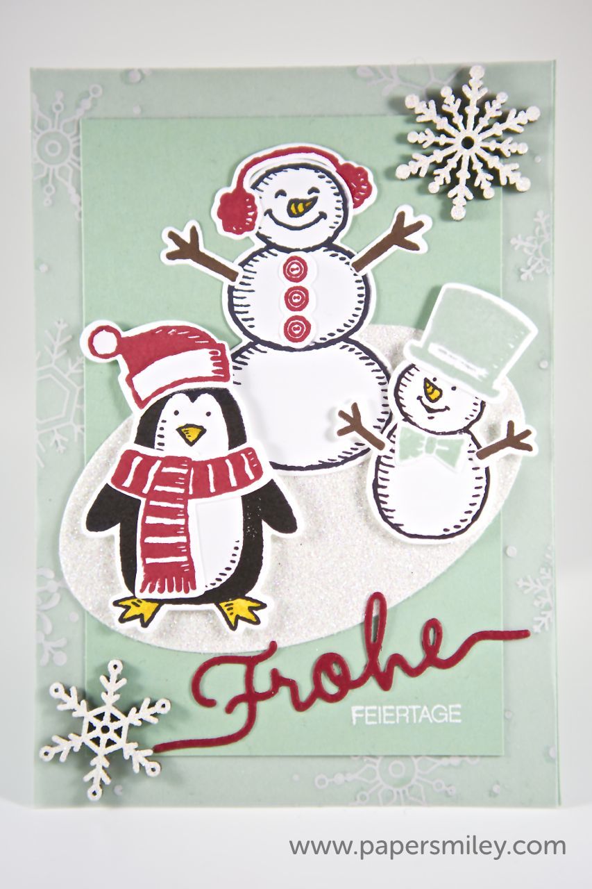 Ich hatte Euch schon ein paar Karten mit Tannen gezeigt, die mit den Thinlits Weihnachtliche Treppe ausgestanzt waren. Ich habe hier noch ein paar Variationen davon.