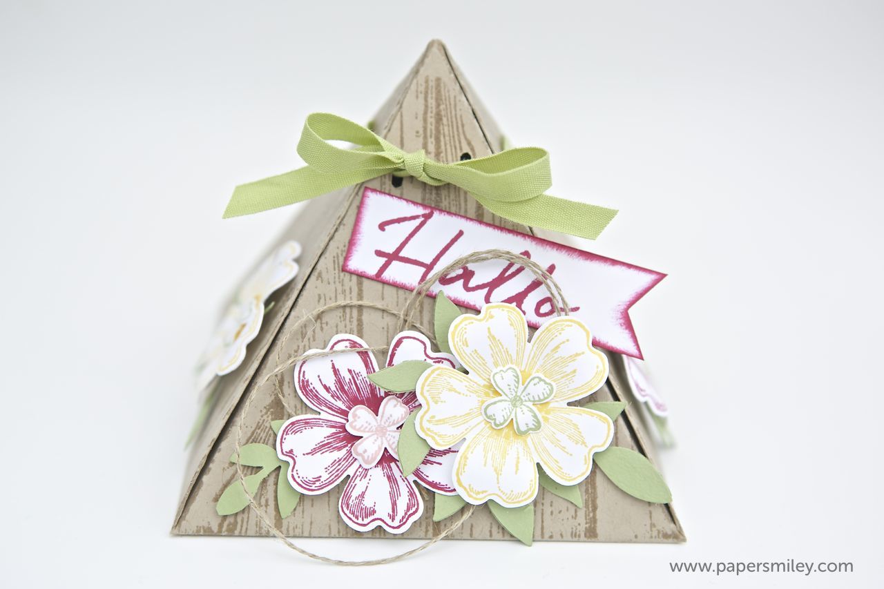 Ich hatte für das Herz ein Designerpapier aus dem Frühjahrskatalog verwendet – das Designerpapier im Block Liebe Grüße. Mit den kleinen Motiven und entsprechenden Texten darauf eignet es sich besonders für diesen Einsatz.
