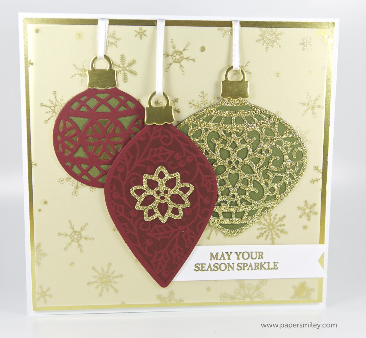 Goldene Weihnachtskarte mit Anhängern von Stampin Up!