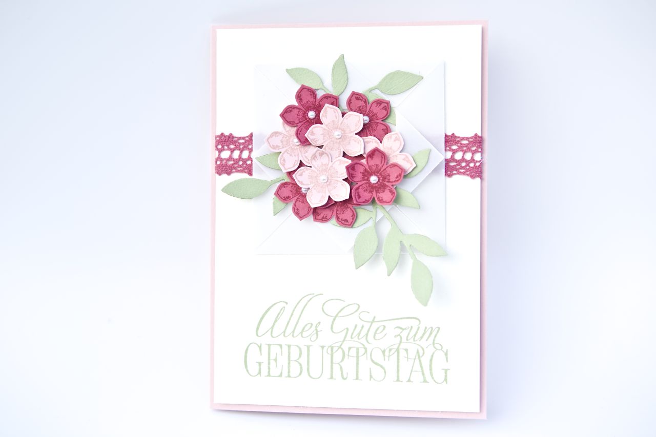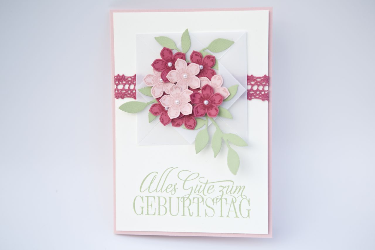 Heute gibt’s wieder eine Geburtstagskarte in sehr gedämpften Farben. Hier dominiert Vanille Pur, Saharasand und Kirschblüte.
