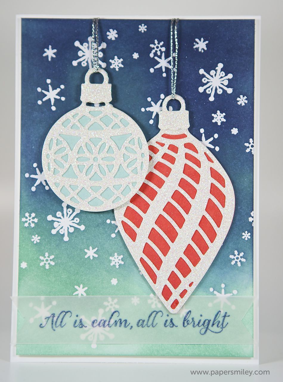 hier nochmal eine Karte mit dem Stempelset Zauberhafte Zierde und den Thinlits Formen am Christbaum. Diesmal aber als versteckte Schüttelkarte.